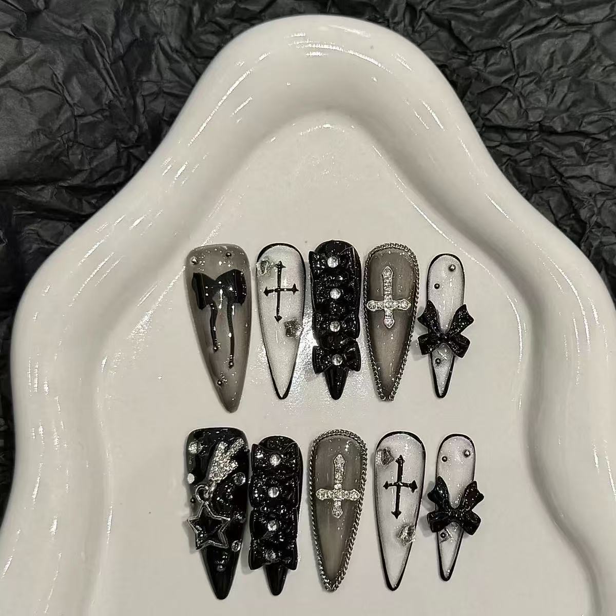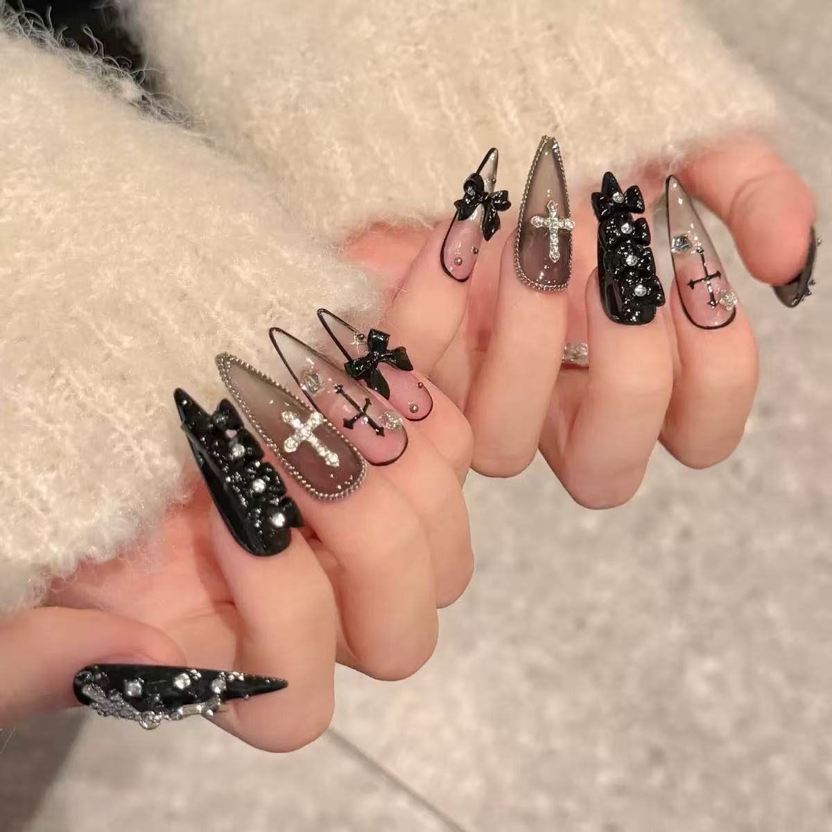 • NAILOVEHalloween black bow long almond-shaped manicure