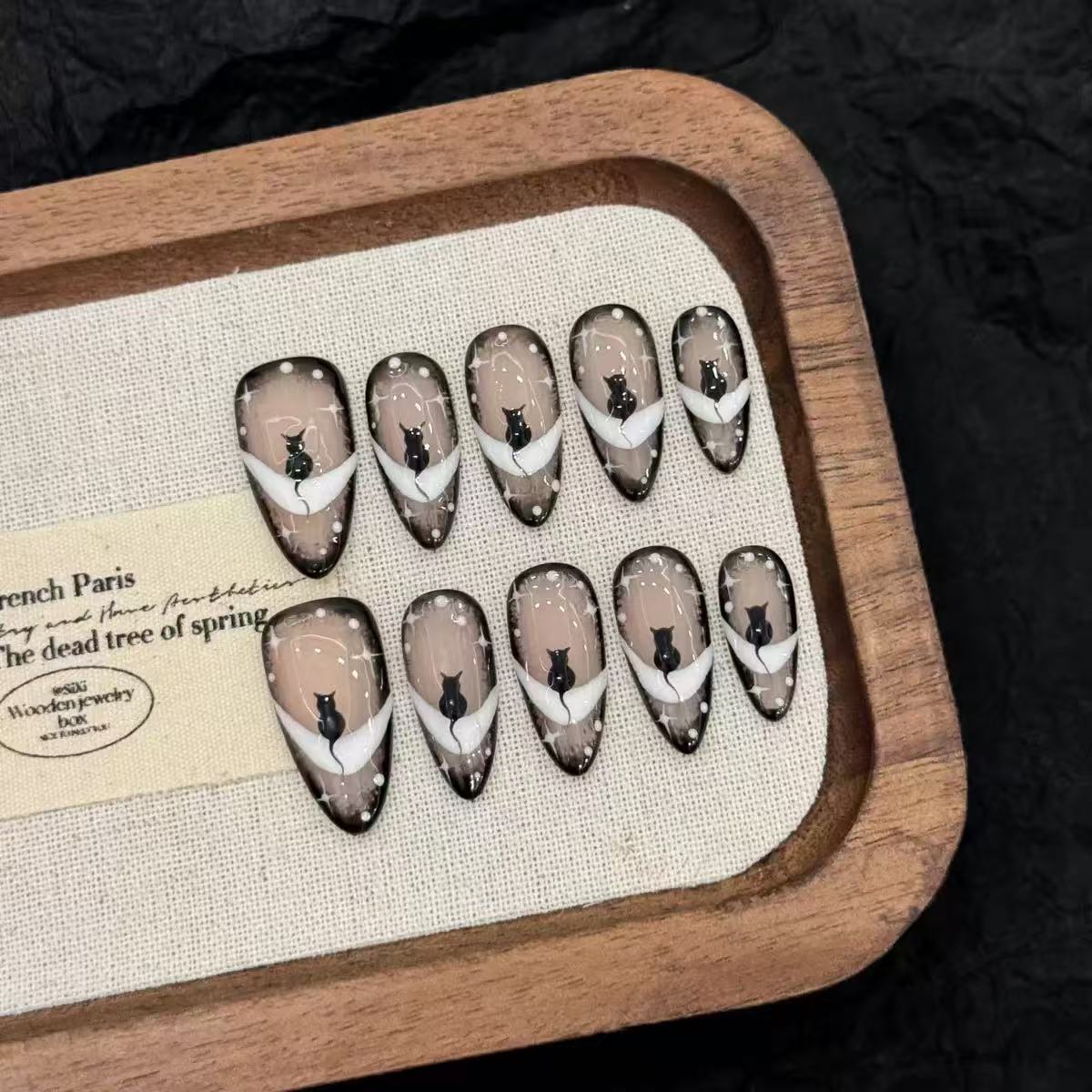 • NAILOVEHalloween black cat almond-shaped nail polish